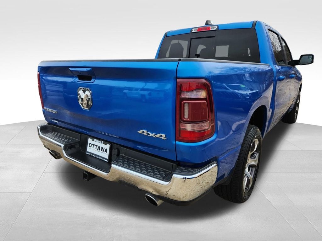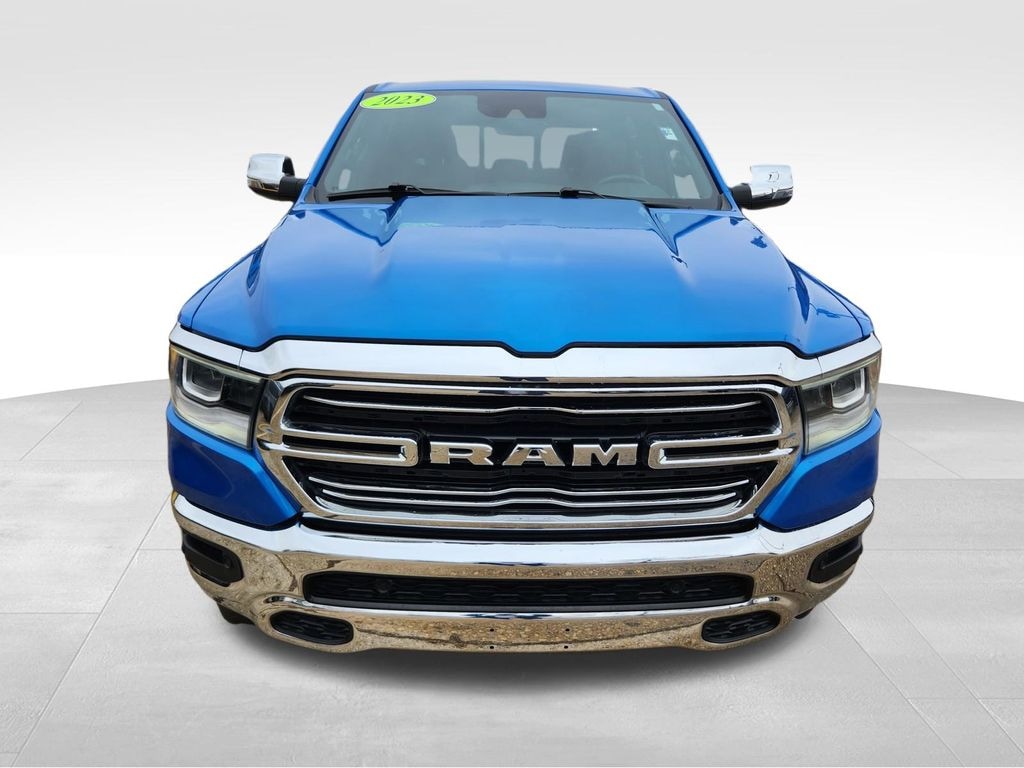 ONE OWNER LARAMIE WITH AN ACCIDENT-FREE CARFAX!!, LEVEL B EQUIPMENT PACKAGE INCLLUDING 12" TOUCHSCREEN WITH NAVIGATION, 19 SPEAKER HARMON KARDON PREMIUM AUDIO, HEATED & VENTILATED FRONT SEATS, HEATED STEERING WHEEL, APPLE CARPLAY / ANDROID AUTO, AUX INPUT & USB PORTS, WIRELESS CHARGING, 8 WAY POWER FRONT SEATS, POWER ADJUSTABLE PEDALS, POWER SLIDING REAR WINDOW, FRONT & REAR PARK ASSIST, BLIND SPOT & REAR CROSS PATH DETECTION, FULL SPEED FORWARD COLLISION WARNING, REMOTE START, DAMPENED TAILGATE, AUTOMATIC HIGH BEAM CONTROLS, 20" ALLOY WHEELS. Hydro Blue Pearlcoat 2023 Ram 1500 Laramie HEMI 5.7L V8 Multi Displacement VVT eTorque 4WD INSPECTED BY ASE CERTIFIED TECHNICIANS. Odometer is 8248 miles below market average!